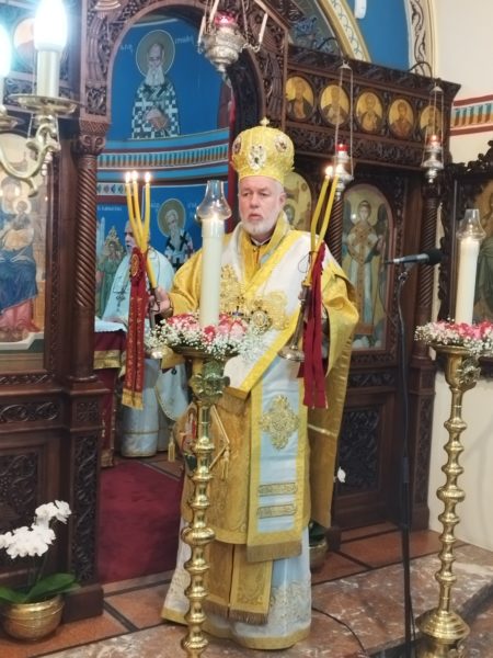 Στο τέλος της Θείας Λειτουργίας ο Σεβασμιώτατος ευχαρίστησε τον Ιερατικώς Προϊστάμενο του Μητροπολιτικού Ναού Πρωτοπρεσβύτερο Αθανάσιο Τοπαρλάκη για το ποιμαντικό έργο το οποίο επιτελεί καθώς και τους συλλειτουργήσαντες κληρικούς για την συμμετοχή τους στην εορτή. Ιδιαιτέρως όμως ευχαρίστησε και αναφέρθηκε στην παρουσία του Πρωτοπρεσβυτέρου Σπυρίδωνος Αντωνίου, ομοτίμου καθηγητού του Τμήματος Κοινωνικής Θεολογίας και Χριστιανικού Πολιτισμού της Θεολογικής Σχολής του Αριστοτελείου Πανεπιστημίου Θεσσαλονίκης, ο οποίος χειροτονήθηκε από τον μακαριστό Μητροπολίτη Βελγίου κυρό Αιμιλιανό προ πεντήκοντα ετών και διακόνησε στο παρελθόν για πολλά χρόνια στην Ιερά Μητρόπολη Βελγίου.