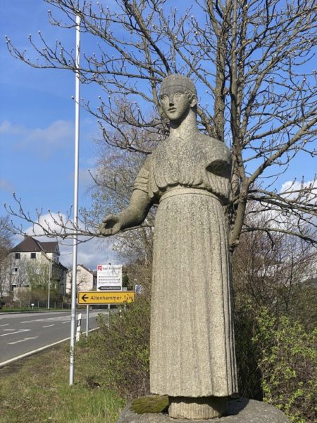 Ομοίωμα του Ηνιόχου των Δελφών στην είσοδο τηςς πόλης Flossenbrürg