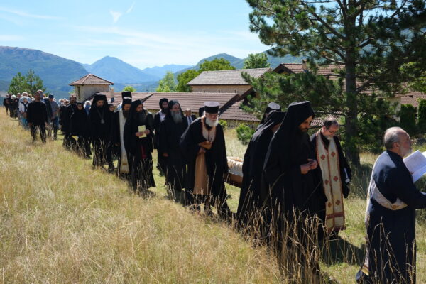 Μεταξύ άλλων στην ομιλία του ο Σεβασμιώτατος τόνισε τα εξής: “Το μυστήριο του διαχωρισμού της ψυχής από το σώμα, αποκτά μια ιδιαίτερη διάσταση αυτές τις μέρες που γιορτάζουμε την Κοίμηση της Θεοτόκου. Αναδύεται από μέσα μας το συναίσθημα της χαρμολύπης βλέποντας να επιστρέφει στον Θεό εκείνος που ήταν για πολλούς πνευματικός πατέρας, συνασκητής και φίλος. Η Ορθοδοξία στη Γαλλία του οφείλει πολλά. Η δημιουργία μιας μοναστικής κοινότητας σε αυτήν την περιοχή όπου η άγρια αλπική φύση μας ωθεί σε έναν εσωτερικό στοχασμό του θείου έργου, είναι παράλληλα ένα έργο με πολλές δυσκολίες, κόπους και ιδρώτα”.