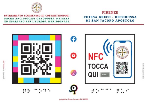 Με την ευλογία και την έμπνευση του Σεβασμιωτάτου Μητροπολίτου Ιταλίας και Εξάρχου Νοτίου Ευρώπης κ. Πολύκαρπου δημιουργήθηκαν ειδικές “έξυπνες” ταμπέλες που θα τοποθετηθούν στις εισόδους των Ενοριών που θα βοηθούν την άμεση παροχή πληροφοριών που αφορούν την ιστορία και τη δραστηριότητα καθώς και άλλες χρήσιμες πληροφορίες.