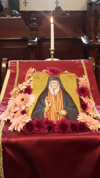 Με κάθε λαμπρότητα και κατάνυξη εορτάστηκε στον Ιερό Ναό Αγίου Γεωργίου Μακροχωρίου Κωνσταντινούπολης η μνήμη του Οσίου Πορφυρίου του Καυσοκαλυβίτου.