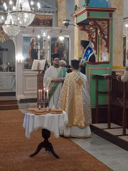 Μετά το πέρας της Θείας Λειτουργίας τελέσθηκε αρτοκλασία υπέρ υγείας και μακροημερεύσεως του Άρχοντος Δωρητού της Ιεράς Μητροπόλεως Δέρκων κ. Κωνσταντίνου Διακρούση μετά των οικείων αυτού.