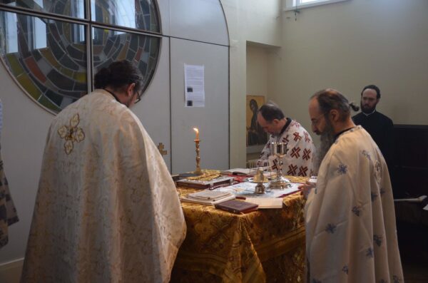 Τὴν Θεία Λειτουργία ἐτέλεσε ὁ ἱερομόναχος Μακάριος τῆς Ἱερᾶς Μονῆς Σίμωνος Πέτρας τοῦ Ἁγίου Ὄρους, μὲ συλλειτουργοὺς τοὺς πατέρες Dominique καὶ Ciprian καθὼς καὶ τὸν διάκονο Barnabas Genbrugge. Στὴν ὁμιλία του ὁ πατὴρ Μακάριος ἐνεθάρρυνε τοὺς νέους νὰ γίνουν ἀπόστολοι τῆς χαρᾶς τῆς Ἀναστάσεως τοῦ Χριστοῦ.