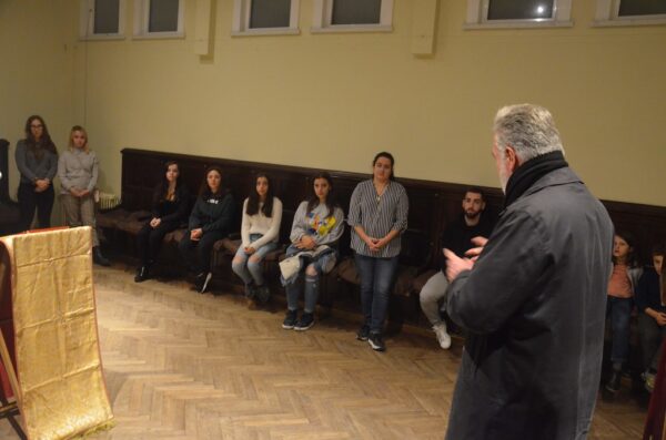 Οἱ Ἱερὲς Ἀκολουθίες καὶ οἱ στιγμὲς τῆς προσευχῆς ἦταν τὸ ἀποκορύφωμα τῆς Συναντήσεως τῶν ὀρθοδόξων Νέων τῆς Ἱερᾶς μας Μητροπόλεως ποὺ φέτος εἶχε τὴν ἐπέτειο τῶν 40 ἐτῶν ἀπὸ τὴν ἵδρυσή της μὲ πλούσιους καρποὺς παρ´ὅλες τὶς πολλὲς δυσκολίες. Μὲ τὴν παρουσία τοῦ Σεβασμιωτάτου Μητροπολίτου Βελγίου κ. Ἀθηναγόρου, παλαιοῦ μέλους τῶν ὀρθοδόξων νέων Βελγίου, τελέστηκε τὸ Σάββατο τὸ βράδυ ὁ Ἑσπερινός ἀπὸ τούς : Πρωτοπρεσβύτερο τοῦ Οἰκουμενικοῦ Θρόνου Dominique Verbeke (ἱδρυτοῦ καὶ ὑπευθύνου τῆς Ὀρθοδόξου Νεολαίας κατὰ τὰ ἔτη: 1979-1989, τοῦ Πρωτοπρεσβυτέρου Bernard Peckstadt (1990-2000), τοῦ Διακόνου Barnabas Genbrugge (2000-2008) καὶ τοῦ Πρωτοπρεσβυτέρου Ciprian Popescu (2008 ἕως σήμερα). Στὴν ὁμιλία του ὁ πατὴρ Dominique εὐχαρίστησε τοὺς Μητροπολίτες Βελγίου κ. Αἰμιλιανό, κ. Παντελεήμονα καὶ κ. Ἀθηναγόρα, ἀλλὰ ἐπίσης καὶ τὸν ἀείμνηστο Ἀρχιεπίσκοπο Συρακουσῶν κ. Γεώργιο, καθὼς ἐπίσης καὶ τοὺς Πρωτοπρεσβυτέρους Marc Nicaise καὶ Ignace Peckstadt γιὰ τὴν ἐμπιστοσύνη ποὺ ἐπέδειξαν στὶς πρωτοβουλίες τῶν ὀρθοδόξων νέων καὶ εὐχήθηκε ἡ ὁμορφιὰ τῆς ἐν Χριστῷ ζωῆς ποὺ βιώθηκε ἀπὸ τοὺς νέους διαφόρων προελεύσεων νὰ συνεχίσῃ μὲ μεγαλύτερη δυναμικὴ στὸ μέλλον.