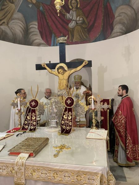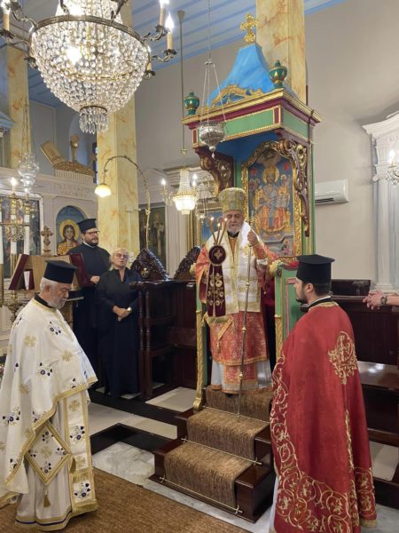Επί τη εορτή της Αποτομής της κεφαλής του ενδόξου Προφήτου, Προδρόμου και Βαπτιστού Ιωάννου τελέσθηκε Αρχιερατική Θεία Λειτουργία, μετ’ αρτοκλασίας, ιερουργούντος του Σεβασμιωτάτου Μητροπολίτη Γέροντος Δέρκων κ. Αποστόλου, στον Ιερό Ναό της Αγίας Παρασκευής της Κοινότητος Βαθυρρύακος, λόγω των ανακαινιστικών έργων, που επιτελούνται στον Ιερό Ναό του Γενεσίου του Τιμίου Προδρόμου Γενή Μαχαλλέ.