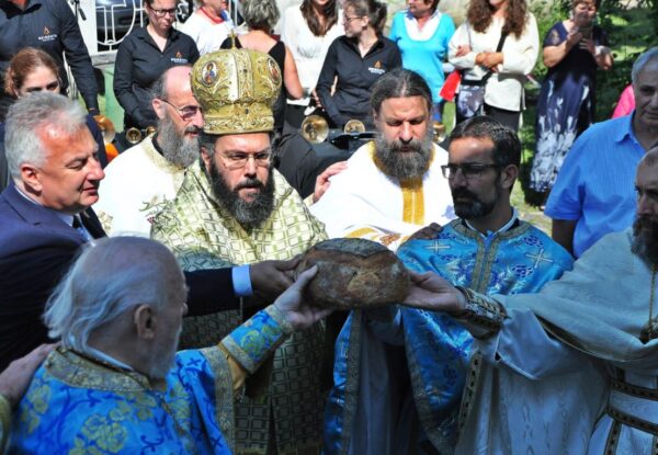 Μετά το πέρας της Θείας Λειτουργίας τελέστηκε η Ακολουθία της Αρτοκλασίας, ενώ ο Σεβασμιώτατος προεχείρισε εις Σταυροφόρον Οικονόμον τον Εφημέριον της Ενορίας των Αγίων Κωνσταντίνου και Ελένης. Ακολούθησαν μέσα σε εορταστικό κλίμα τα αποκαλυπτήρια μαρμάρινης πλάκας εις ανάμνησιν της επισκέψεως του Οικουμενικού μας Πατριάρχου Βαρθολομαίου Α΄ με τον Αναπληρωτή Πρωθυπουργό της Ουγγαρίας Zsolt Semjén εις Beloiannisz πριν από είκοσι έτη. Στην σύντομη ομιλία του ο Σεβασμιώτατος Μητροπολίτης έκανε μία σύντομη αναδρομή στο έργο της Εξαρχίας της Ουγγαρίας από ιδρύσεώς της κατά το έτος 1995 μέχρι τούδε, το οποίο βεβαίως, τόνισε, οφείλεται πρωτίστως στην χάρη και στην πρόνοια του Θεού, αλλά και στην στήριξη της Ουγγρικής Κυβερνήσεως. Στην συνέχεια, ευχαρίστησε προσωπικώς τον Αναπληρωτή Πρωθυπουργό για την συνεχή αρωγή και την βοήθειά του στα καθόλου ζητήματα της Εξαρχίας, τονίζοντας ταυτοχρόνως την ιδιαίτερη σχέση του με την Αγία του Χριστού Μεγάλη Εκκλησία και την Σεπτή κορυφή αυτής.