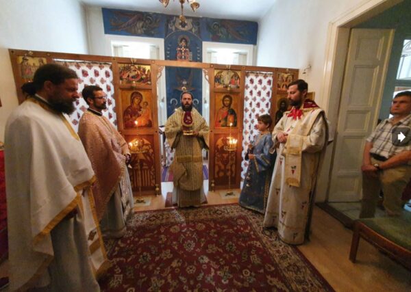 Την επομένη, ήτοι την 19ην Αυγούστου ε.ε., ο Σεβασμιώτατος Μητροπολίτης Αυστρίας, Έξαρχος Ουγγαρίας και Μεσευρώπης κ. Αρσένιος προέστη στον Ι.Ν. των Αγίων Κωνσταντίνου και Ελένης εις Beloiannisz της Θείας Λειτουργίας, πλαισιούμενος υπό του Εφημερίου του Ι.Ν. Πρεσβυτέρου Προδρόμου Laszlo-Katona, του Ιερομονάχου Μαρτίνου, του Πρωτοπρεσβυτέρου Bóris Füzék, των Πρεσβυτέρων Γρηγορίου Nácsinák, Ιωσήφ Ötvös, Róbert Szentirmai και του Αρχιδιακόνου Μαξίμου Rudko παρουσία των πολιτικών και διπλωματικών αρχών, του Δημάρχου της ως άνω περιοχής Κωνσταντίνου Παπαλέξη, αλλά και πλήθους πιστών.