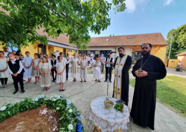 Τον Σεβασμιώτατο Μητροπολίτη υποδέχθηκαν η Διευθύντρια Zsuzsanna Molnar, οι μαθήτριες και οι μαθητές του Σχολείου μετά των γονέων και κηδεμόνων.