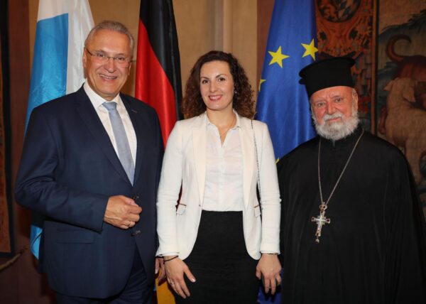 Ο Βαυαρός Υπουγός ευχαρίστησε ιδιαίτερα και τον Πρωτοπρεσβύτερο Απόστολο Μαλαμούση για τη παρουσία του στην εκδήλωση, για τη συνοδεία και παρουσίαση της κ. Μαστορίδη και φωτογραφήθηκε μαζί τους.