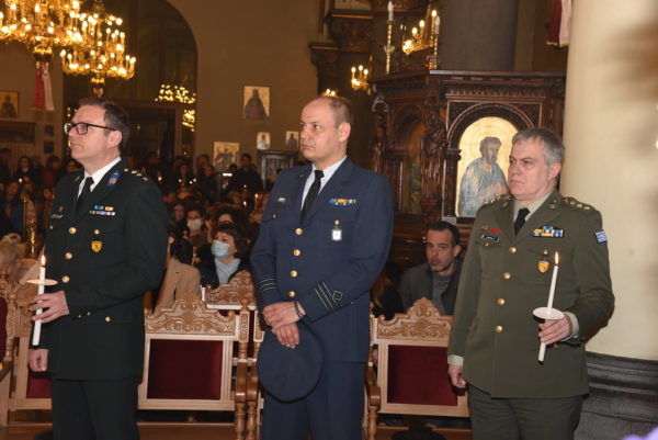 Εκκλησιάστηκαν ο Πρέσβης της Ελλάδος στο Βέλγιο κ. Διονύσιος Καλαμβρέζος, αντιπροσωπεία Ελλήνων αξιωματικών από το ΝΑΤΟ, Άρχοντες της Αγίας του Χριστού Μεγάλης Εκκλησίας και πλήθος πιστών.