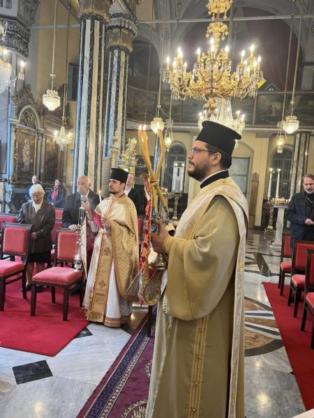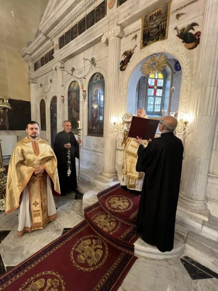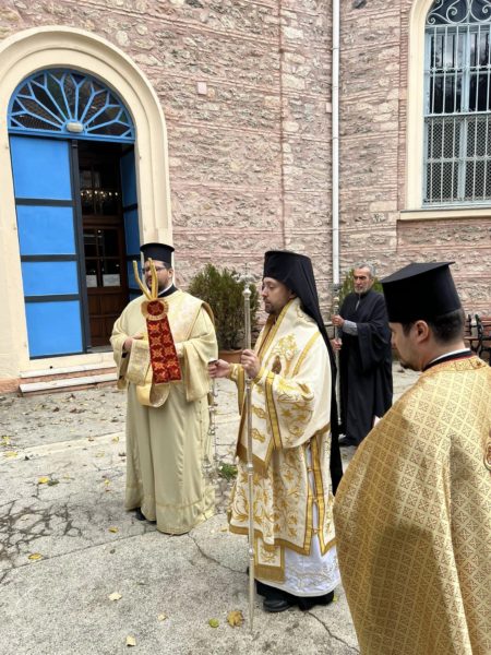 Επί τη μνήμη της ανακομιδής των Ιερών Λειψάνων του Αγίου Μεγαλομάρτυρος Γεωργίου του Τροπαιοφόρου και εις ανάμνησιν της διασώσεως του προαστείου των Θεραπείων στην Κωνσταντινούπολη εκ της καταστρεπτικής πυρκαϊάς με την θαυματουργική επέμβαση του Αγίου, τελέσθηκε την Κυριακή 3 Νοεμβρίου 2024, Αρχιερατική Θεία Λειτουργία, μετ’ αρτοκλασίας, στον Ιερό Μητροπολιτικό Ναό Αγίας Παρασκευής Θεραπείων, ιερουργούντος του Θεοφιλεστάτου Επισκόπου Ξανθουπόλεως κ. Παϊσίου.