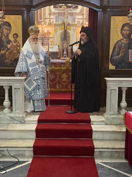 Ὁ Σεβ. κ. Ἰγνάτιος, εὐχαριστήσας γιὰ τοὺς καλοὺς λόγους, ἀναφέρθηκε στὸ περιεχόμενο τῆς ἑορτῆς τῆς Κοιμήσεως τῆς Θεοτόκου, στοὺς στενοὺς δεσμοὺς ποὺ συνδέεουν τὶς δύο Ἱ. Μητροπόλεις Δημητριάδος καὶ Σμύρνης, καὶ διὰ τῶν προσώπων ποὺ διακονοῦν σὲ αὐτές, ἰδιαιτέρως δὲ ἀναφέρθηκε στὴν ἀνάγκη διακονίας ἀπὸ κοινοῦ, μὲ ὅλες τὶς διατιθέμενες δυνάμεις μας, τῆς Ὀρθόδοξης Ἐκκλησίας ὡς ἑνιαίου θεσμοῦ, ἰδιαιτέρως δὲ κατὰ τὴ σύγχρονη ἐποχὴ τῶν πολλῶν περισπασμῶν. Μετὰ τὸ πέρας τῆς Θείας Λειτουργίας ἀνεγνώσθη Τρισάγιο ὑπὲρ ἀναπαύσεως τοῦ μακαριστοῦ Πρωτοπρεσβυτέρου Μαρίνου Γεωργακοπούλου, κατὰ σάρκα πατρὸς τοῦ Σεβ. κ. Ἰγνατίου, ἐπ’ εὐκαιρίᾳ τῆς συμπληρώσεως δεκαπέντε ἐτῶν ἀπὸ τῆς πρὸς Κύριον ἐκδημίας αὐτοῦ.
