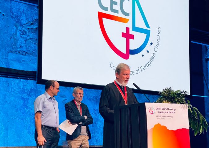 Με τίτλο “Καθώς η θητεία μου ολοκληρώνεται …”, ο Μητροπολίτης Σουηδίας κ. Κλεόπας μίλησε στην Γενική Συνέλευση της Διάσκεψης Ευρωπαϊκών Εκκλησιών (CEC), στο Ταλίν της Εσθονίας, στις 20 Ιουνίου. Μεταξύ άλλων ο Σεβασμιώτατος εξέφρασε την ευγνωμοσύνη του στον Οικουμενικό Πατριάρχη κ.κ. Βαρθολομαίο, καθώς και ευχαρίστησε τους συναδέλφους του για τη συνεργασία τους ως Αντιπροέδρου της CEC.