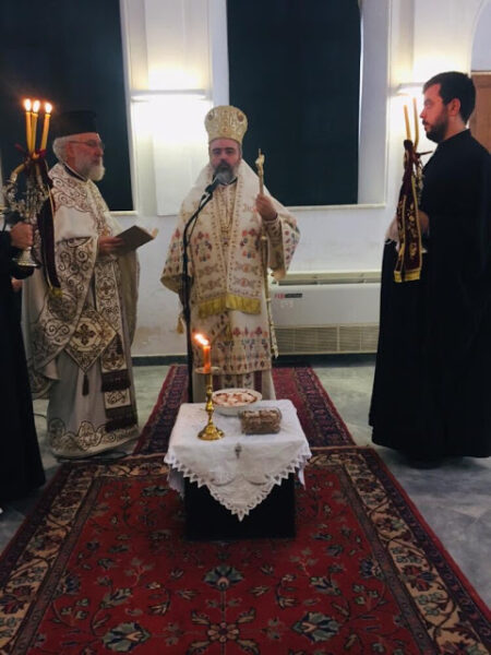 Το απόγευμα της Κυριακής 13 Σεπτεμβρίου, τελέσθηκε ο Μέγας Εσπερινός της εορτής, χοροστατούντος του Σεβ. Μητροπολίτου Σμύρνης κ. Βαρθολομαίου, ο οποίος προεξήρχε της Θείας Λειτουργίας της εορτής, ανήμερα της εορτής. Προ της απολύσεως ευλόγησε την αρτοκλασία υπέρ υγιείας και μακροημερεύσεως των προσελθόντων πιστών, μετά δε από αυτή τέλεσε Τρισάγιο υπέρ αναπαύσεως των μακαρίων και αοιδίμων κτιτόρων του Ιερού Ναού, των ιερατευσάντων και διακονησάντων εν αυτώ, των μακαρίων ευεργετών, εφοροεπιτρόπων και εκπαιδευτικών των Σχολείων της περιωνύμου αυτής Κοινότητος.