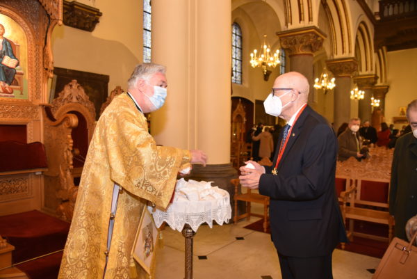 Στην συνέχεια ο Σεβασμιώτατος έκοψε την Βασιλόπιτα και την διένειμε στους παρισταμένους επισήμους, τον ιερό κλήρο και τον λαό.