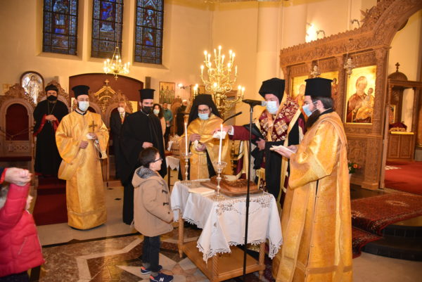Εσπερινός και η τελετή της κοπής της Βασιλόπιτας της Ιεράς Μητροπόλεως Βελγίου τελέστηκαν στον Ιερό Μητροπολιτικό Ναό των Παμμεγίστων Ταξιαρχών Βρυξελλών την Κυριακή 9 Ιανουαρίου 2022.
