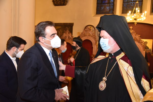 Στον Εσπερινό χοροστάτησε ο Σεβασμιώτατος Μητροπολίτης Βελγίου και Έξαρχος Κάτω Χωρών και Λουξεμβούργου κ. Αθηναγόρας και συγχοροστάτησε ο Θεοφιλέστατος Επίσκοπος Απολλωνιάδος κ. Ιωακείμ, ενώ παρέστη και ο Πανιερώτατος Αρχιεπίσκοπος της Συροϊακωβιτικῆς Εκκλησίας κ. Γεώργιος Kourieh.