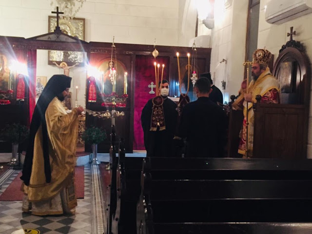 Κατά την Θεία Λειτουργία ο Σεβασμιώτατος μνημόνευσε όσους νοσούν από τον νέο κορωνοϊό και προσευχήθηκε για ταχεία ανάρρωσή τους και ευχήθηκε στα μέλη της κοινότητας.