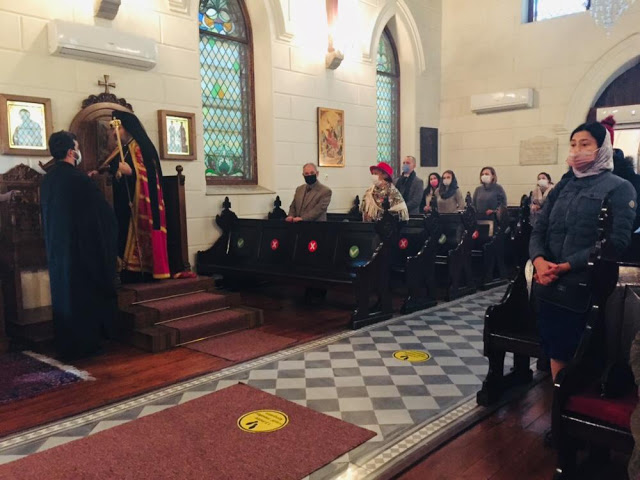 Κατά την Θεία Λειτουργία ο Σεβασμιώτατος μνημόνευσε όσους νοσούν από τον νέο κορωνοϊό και προσευχήθηκε για ταχεία ανάρρωσή τους και ευχήθηκε στα μέλη της κοινότητας.