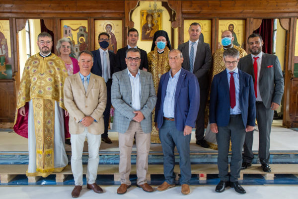 Ακολούθως, ο Σεβασμιώτατος, μαζί με τους εφημερίους και τα μέλη του Εκκλησιαστικού Συμβουλίου, είχαν συνάντηση με τα συνεργεία αποκαταστάσεως και πληροφορήθηκαν για την πρόοδο των έργων στο ναό και την αίθουσα δεξιώσεων.