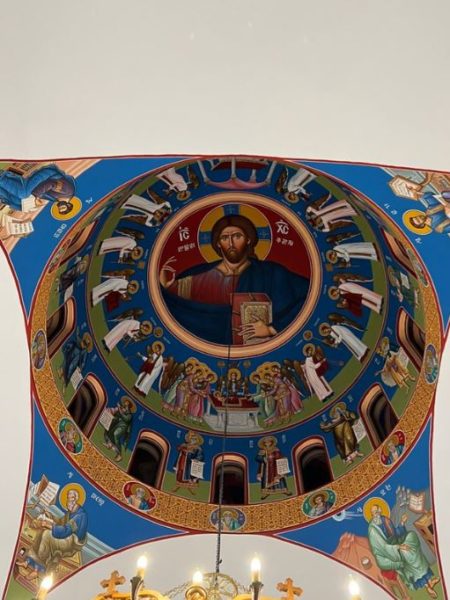 Μετά έφθασαν στον ιερό ναό Κοιμήσεως της Θεοτόκου όπου όλοι εντυπωσιάστηκαν από το κάλλος του ναού και τις υπέροχες αγιογραφίες του. Ακολούθησε το δείπνο στην τράπεζα του πνευματικού κέντρου. Στην συνέχεια συγκεντρώθηκαν όλοι στο ναό για το Απόδειπνο και την Ακολουθία της Ιεράς Μεταλήψεως. Η ομορφιά του ναού την νύχτα και η κατανυκτική Ακολουθία γέμισε ουράνια συναισθήματα του προσκυνητές.