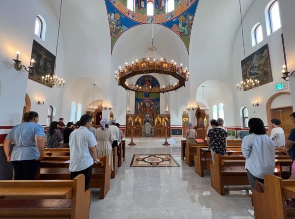 Στην Θεία Λειτουργία της Κυριακής προέστη ο εφημέριος του ναού π. Ιλαρίων Jeong, με συλλειτουργό τον π. ΡωμανόKavchak. Στο κήρυγμά του κατά την θεία λειτουργία ο π. Ρωμανός ανέλυσε τη σημασία του ναού για τους Ορθοδόξους πιστούς και επεσήμανε τα πνευματικά οφέλη του προσκυνήματός τους.