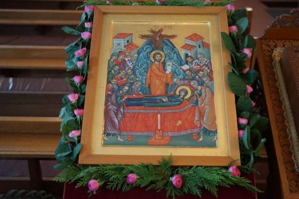 Την κυριώνυμο ημέρα, την Κυριακή 15 Αυγούστου, τελέστηκε ο Όρθρος της εορτής και η Θεία Λειτουργία, κατά την οποία ο Μητροπολίτης στο κήρυγμά του ανέπτυξε το θέμα: «Περί μεσιτείας της Θεοτόκου», για να μπορούν οι πιστοί να αντιμετωπίζουν όσους εκ των μη Ορθοδόξων απορρίπτουν την τιμή και την επίκληση της μεσιτείας της Παναγίας. Ιδιαιτέρως, επίσης, τονίστηκε, ότι χωρίς τον προσωπικό αγώνα του Χριστιανού για την χριστομίμησή του, η μεσιτεία της Θεοτόκου και των Αγίων από μόνη της δεν σώζει ως δια μαγείας.