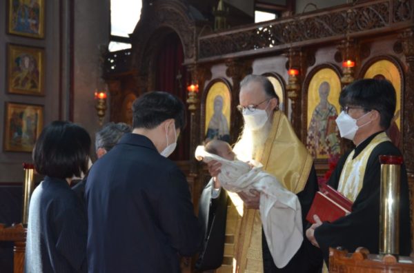 Μετά την Βαπτισματική θεία Λειτουργία ο Διονύσιος KWON Se-Byok και η Κατερίνα PARK Hyon-Jin έφεραν την νεογέννητη κόρη τους KWON Si-On στον Καθεδρικό Ιερό Ναό του Αγίου Νικολάου για τον Σαραντισμό της. Το βρέφος είναι το πρώτο εγγόνι του αείμνηστου πατρός Παύλου KWON.