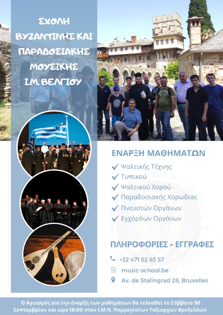 Ξεκίνησαν από την 1η Σεπτεμβρίου οι εγγραφές για το νέο Διδακτικό Έτος 2023-2024 στη Σχολή Βυζαντινής και Παραδοσιακής Μουσικής της Ιεράς Μητροπόλεως Βελγίου.