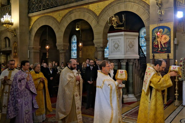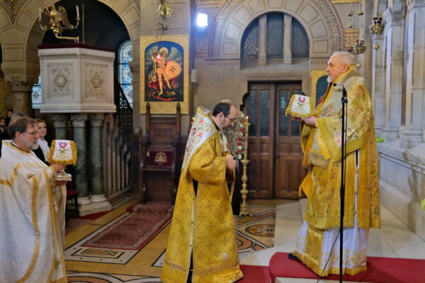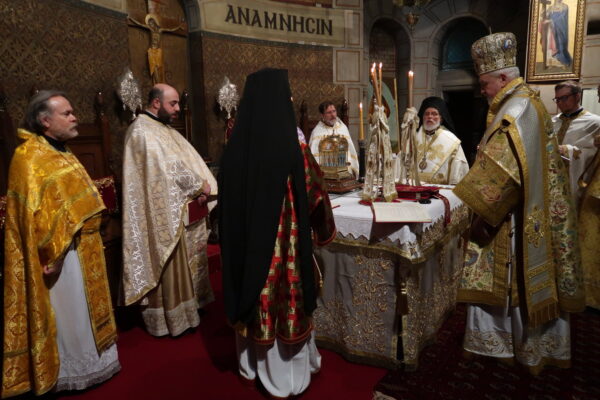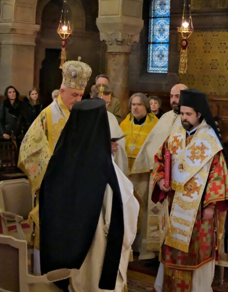 Της Θείας Λειτουργίας προεξήρχε ο Σεβασμιώτατος Μητροπολίτης Γαλλίας κ. Εμμανουήλ, συλλειτουργούντων των Θεοφιλεστάτων Επισκόπων Ρηγίου κ. Ειρηναίου και Μελιτηνής κ. Μαξίμου, καθώς και κληρικών εκ προσώπου των εν Γαλλία μελών της Επισκοπικής Συνελεύσεως (Οικουμενικό Πατριαρχείο, Πατριαρχείο Αντιοχείας και Πατριαρχείο Ρουμανίας).