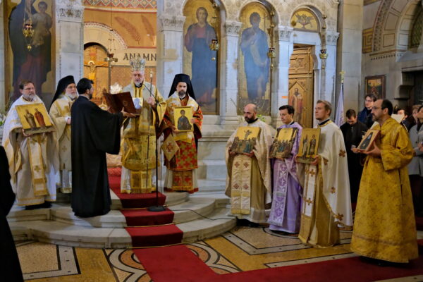 08/03/2020 08/03/2020 Εορτάσθηκε η Κυριακή της Ορθοδοξίας στο Παρίσι, παρά την ανησυχία λόγω των πολλαπλών κρουσμάτων Κορονοϊού στη Γαλλική πρωτεύουσα. Της Θείας Λειτουργίας προεξήρχε ο Σεβασμιώτατος Μητροπολίτης Γαλλίας κ. Εμμανουήλ, συλλειτουργούντων των Θεοφιλεστάτων Επισκόπων Ρηγίου κ. Ειρηναίου και Μελιτηνής κ. Μαξίμου, καθώς και κληρικών εκ προσώπου των εν Γαλλία μελών της Επισκοπικής Συνελεύσεως (Οικουμενικό Πατριαρχείο, Πατριαρχείο Αντιοχείας...