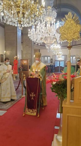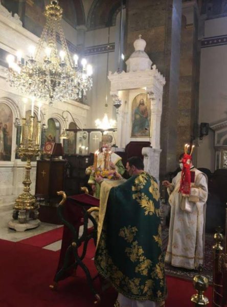 Η Θεία Λειτουργία ετελέσθη κεκλεισμένων των θυρών λόγω της πανδημίας του Covid-19.