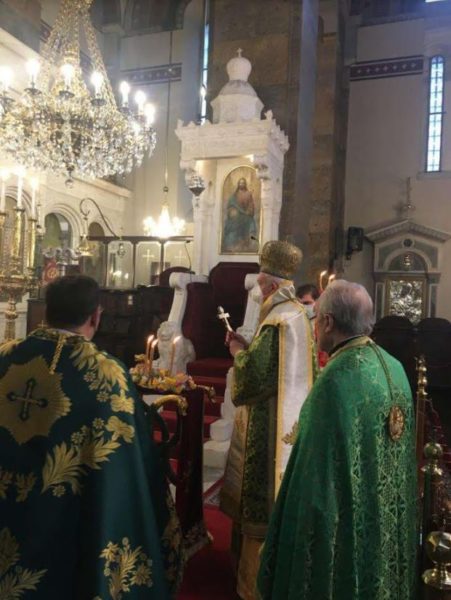 Στον Καθεδρικό Ι. Ναό Αγίας Τριάδος Χαλκηδόνος λειτούργησε σήμερα, Κυριακή της Σταυροπροσκυνήσεως, ο Σεβασμιώτατος Μητροπολίτης Γέρων Χαλκηδόνος κ. Εμμανουήλ, συμπαραστατούμενος υπό του Αρχιμ. του Οικουμενικού Θρόνου π. Ελευθερίου Αλούκου, του Πρωτοπρ. π. Βασιλείου Κομνηνού και του Διακόνου Αστερίου Μπαρντακτσή.