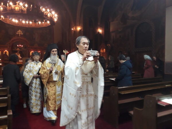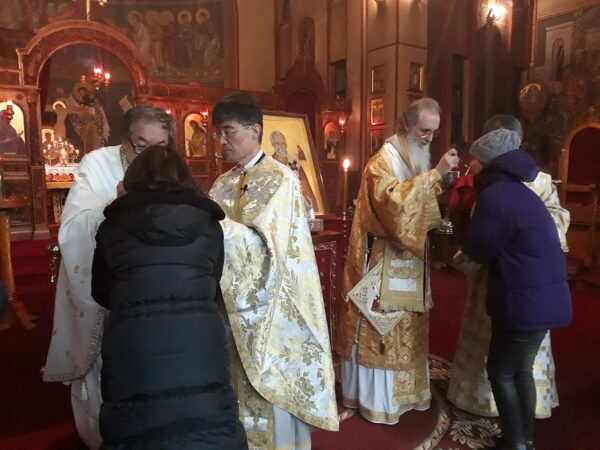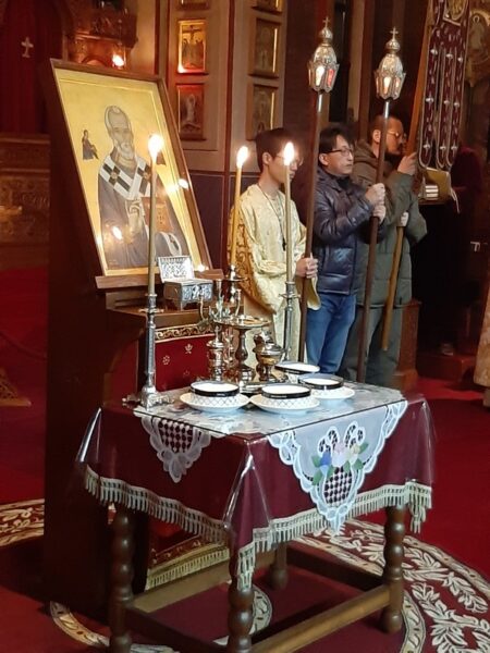 Την Πέμπτη 5 Δεκεμβρίου 2019, τελέστηκε στον Καθεδρικό Ιερό Ναό ο Αρχιερατικός Εσπερινός της εορτής του αγίου Νικολάου χοροσταντούντος του Μητροπολίτου Κορέας Αμβροσίου και με την συμμετοχή των πρεσβυτέρων π. Αντωνίου Woo, π. Ρωμανού Kavchak, π. Αντωνίου Lim και του διακόνου Γιοχάν Park.