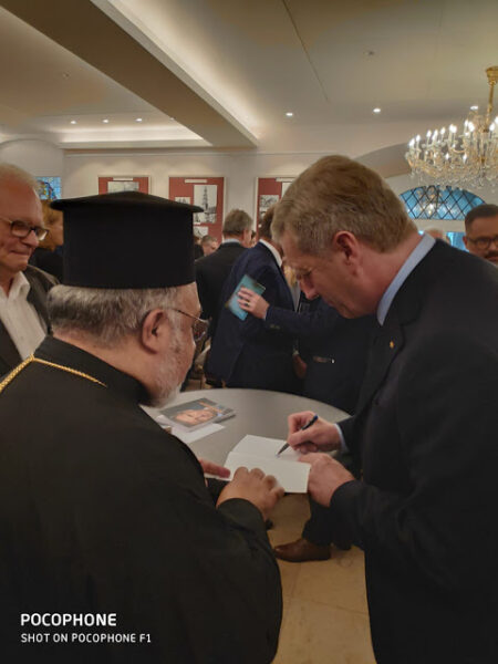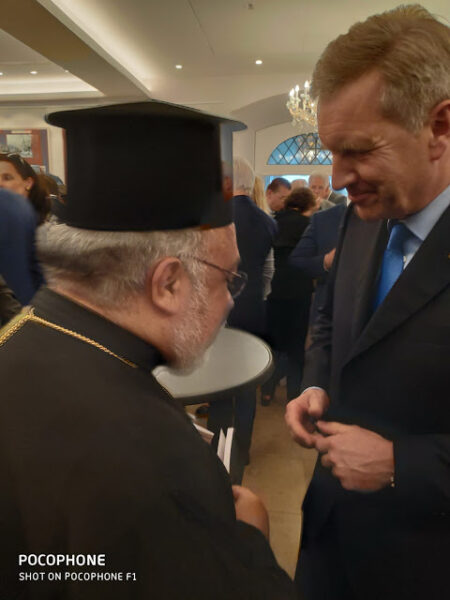 Σε εκδήλωση που πραγματοποιήθηκε στη Neustädter Hof- und Stadtkirche στο Αννόβερο, με την ευκαιρία της συμπλήρωσης του εξηκοστού έτους του τέως Προέδρου της Ομοσπονδιακής Δημοκρατίας της Γερμανίας κ. Christian Wulff, παρέστησαν επισήμως προσκεκλημένοι, ο ιερατικώς προϊστάμενος της ενορίας Τριών Ιεραρχών Αννόβερου, αρχιμανδρίτης π. Γεράσιμος Φραγκουλάκης και ο διευθυντής του Ελληνικού Λυκείου Αννοβέρου, Δρ. κ. Φοίβος Χατζημιχαήλ.