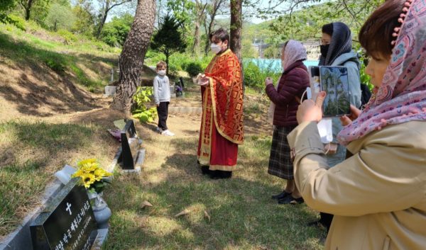 Με τη συμμετοχή σλαβόφωνων πιστών, ο π. Roman Kavchak τέλεσε την Θεία Λειτουργία στον κοιμητηριακό ιερό Ναό της Αναστάσεως του Σωτήρος Χριστού στο Yongmi-ri.