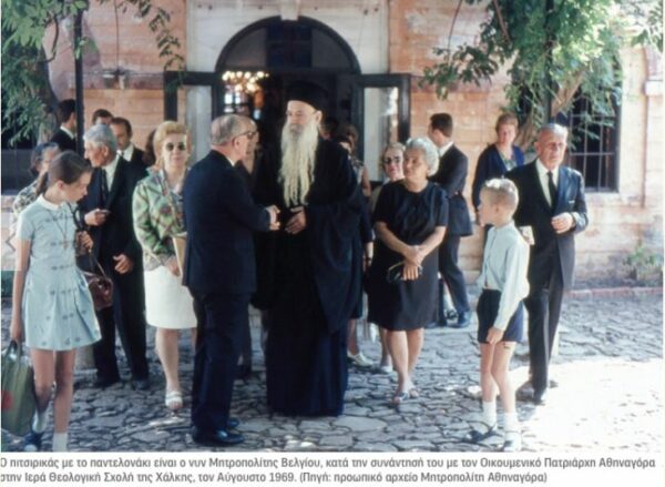 «Πήγαμε Δεκαπενταύγουστο στο Φανάρι, αλλά ο Πατριάρχης Αθηναγόρας έλειπε. Ένας αρχιερέας μας είπε, μην στενοχωριέστε, θα πάτε αύριο να τον βρείτε στη Χάλκη. Μας είπε να ανεβούμε το λόφο και να βρούμε το Μοναστήρι, όπου θα ήταν ο Πατριάρχης. Πράγματι, φτάσαμε εν ώρα λειτουργίας. Είδαμε μόνο έναν ιερέα και έναν διάκονο, ο Πατριάρχης ήταν στο ιερό. Ο διάκονος λεγόταν Βαρθολομαίος. Ο σημερινός Πατριάρχης!», διηγείται. Από τότε ξεκινάει η μακρά σχέση του με τον Οικουμενικό Πατριάρχη, ένας δεσμός ζωής που κρατάει μέχρι σήμερα.