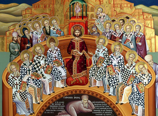 Τιμώντας τους Πατέρες της Εκκλησίας, τιμούμε τους εκφραστές της πιστότητος και της ενότητος της εκκλησιαστικής διδασκαλίας προς τη διδασκαλία του Χριστού, αυτούς που δογμάτισαν και κατεδίκασαν την αίρεση του Αρείου, που δίδασκε ότι ο Υιός του Θεού είναι κτίσμα του Πατρός, και ανεκήρυξαν το Χριστό Θεό, “ὁμοούσιον τῷ Πατρί”.
