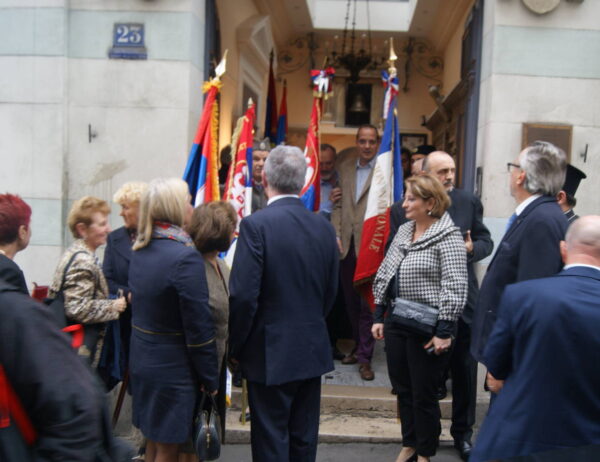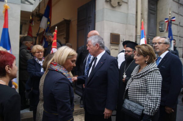 Εκπροσωπώντας τον Σεβασμιώτατο Μητροπολίτη Γαλλίας κ. Εμμανουήλ, ο προϊστάμενος του Ι. Ναού Αρχιμ. Δημήτριος Πλουμής υποδέχτηκε τη Βασιλική οικογένεια καθώς και όλους τους υψηλούς προσκεκλημένους, τον Υπουργό Εργασίας της Σερβίας αλλά και την Πρέσβη της Σερβίας στο Παρίσι, ενώ στη συνέχεια ετελέσθη η επιμνημόσυνη δέηση.