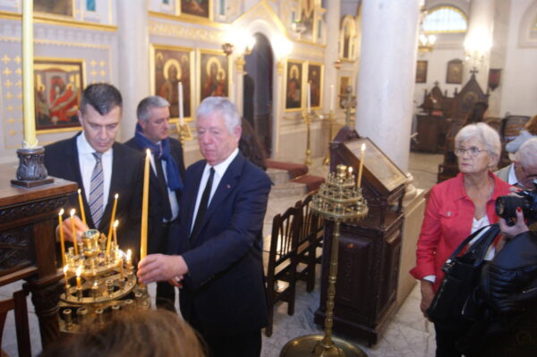 Εκπροσωπώντας τον Σεβασμιώτατο Μητροπολίτη Γαλλίας κ. Εμμανουήλ, ο προϊστάμενος του Ι. Ναού Αρχιμ. Δημήτριος Πλουμής υποδέχτηκε τη Βασιλική οικογένεια καθώς και όλους τους υψηλούς προσκεκλημένους, τον Υπουργό Εργασίας της Σερβίας αλλά και την Πρέσβη της Σερβίας στο Παρίσι, ενώ στη συνέχεια ετελέσθη η επιμνημόσυνη δέηση.