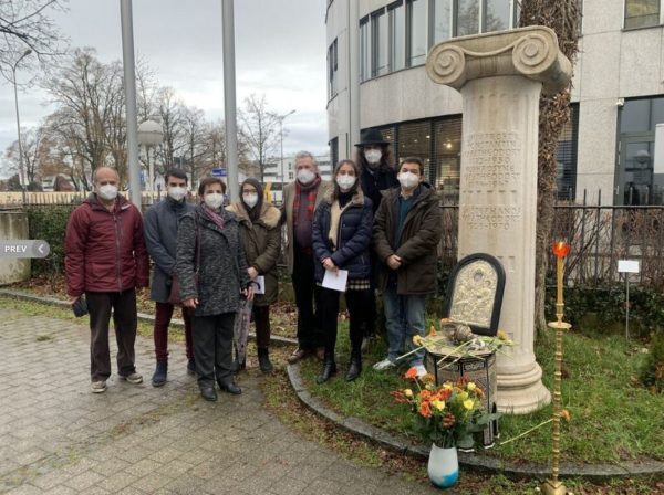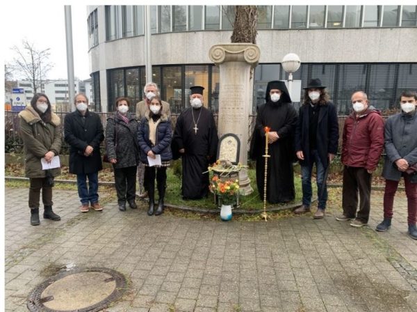 Η εκδήλωση μνήμης που διοργάνωσαν η Ιερά Μητρόπολη Γερμανίας, η Ενορία Αγίων Πάντων Μονάχου και το Ελληνικό Λύκειο Μονάχου “Kωνσταντίνος Καραθεοδωρή“ έλαβε χώρα μπροστά στον επιτάφιο κίονα Καραθεοδωρή, που είναι τοποθετημένος στην αυλή του Ναού των Αγίων Πάντων Μονάχου.
