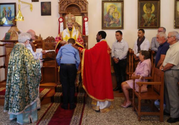 Στο κήρυγμά του ο Επίσκοπος Μελιτηνής κ. Μάξιμος αναφέρθηκε στην ευαγγελική περικοπή της ημέρας, υπογραμμίζοντας την απλότητα, τον αυθορμητισμό και την πίστη των μαθητών που αποδέχτηκαν αμέσως το κάλεσμα του Κυρίου. Συμβούλευσε τους Ορθοδόξους της ενορίας να εφαρμόζουν αυτή την απλότητα στη ζωή τους και να μην παρασύρονται από φωνές που προωθούν τον εθνοφυλετισμό και τη διχόνοια. Μεταξύ άλλων ανέφερε χαρακτηριστικά: “Αγαπητοί Χριστιανοί, πολλοί προτάσσουν την εθνική τους ταυτότητα εις βάρος της Εκκλησίας. Δεν είμαστε ούτε Έλληνες, ούτε Σέρβοι, ούτε Ρουμάνοι, Ρώσοι Άραβες ή Γεωργιανοί. Ομιλούμε πολλές γλώσσες αλλά όλοι είμαστε τέκνα του Κυρίου και αδελφοί ενώπιον του Ιησού. Το διαβατήριό μας δεν πρόκειται να μας σώσει την φοβερά ώρα της κρίσεως, ούτε η γλώσσα μας, ούτε η ιδιαιτέρα εκκλησιαστική τέχνη της πατρίδας μας. Η αγάπη που έχουμε στην καρδιά μας, η ειρήνη και η απλότητα του βίου μας θα μας σώσουν. Εδώ, σε αυτή την όμορφη απομακρυσμένη Κοινότητα που απαρτίζεται από Ορθοδόξους προερχομένους από πολλές χώρες, και ο καθένας κουβαλάει νοσταλγικά μνήμες από την πατρίδα του, ενώνουμε τις προσευχές μας για την ειρήνη και την ενότητα της Εκκλησίας, και υπό τη σκέπη της Μεγάλης του Χριστού Εκκλησίας, εργαζόμαστε ακούραστα για τη μεταλαμπάδευση της Ορθοδοξίας σε νέα μέλη της Κοινότητάς μας”.