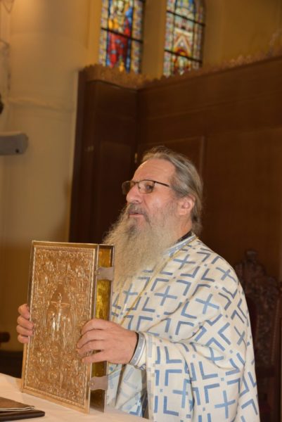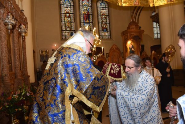 Με το πέρας της Δοξολογίας, ο Σεβασμιώτατος ευχαρίστησε εκ βάθους καρδίας τον Αρχιμανδρίτη π. Ελισαίο Σιμωνοπετρίτη για την αποδοχή της προσκλήσεως να επισκεφθεί την Ιερά Μητρόπολη και να μιλήσει ως κεντρικός ομιλητής στην Σύναξη του Κλήρου της Μητροπόλεως αλλά επιπλέον και για τον κόπο του εκτός της Συνάξεως να μιλήσει στους πιστούς και των τριών χωρών της Ιεράς Μητροπόλεως, το Βέλγιο, την Ολλανδία και το Λουξεμβούργο.