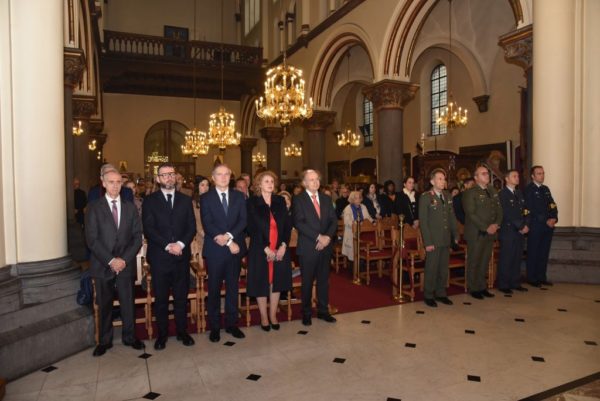 Μετά το τέλος της Θείας Λειτουργίας τελέστηκε η Δοξολογία επί τη επετείω της 28ης Οκτωβρίου με την παρουσία των Διπλωματικών Αρχών της Ελλάδος στο Βέλγιο με επικεφαλής τον Πρέσβυ κ. Διονύσιο Καλαμβρέζο και των Στρατιωτικών Αρχών της Ελλάδος στο ΝΑΤΟ με επικεφαλής τον Αντιστράτηγο κ. Πέτρο Δεμέστιχα.