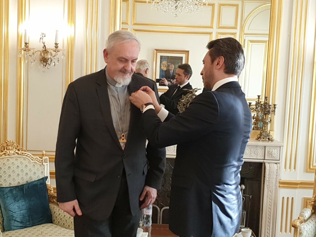 Σε μια σεμνή τελετή, στην αίθουσα της Πρεσβείας του Καζακστάν, ο Εξοχότατος Πρέσβης κ. Jean Galiev, επέδωσε στον Σεβασμιώτατο Μητροπολίτη Γαλλίας κ. Εμμανουήλ το παράσημο του Τάγματος της Φιλίας του Καζακστάν, σύμφωνα με απόφαση του Εξοχοτάτου Προέδρου της χώρας κ. Nursultan Nazarbayev, για τη συμβολή του Μητροπολίτου Γαλλίας στον διαθρησκειακό διάλογο, τη φιλία και τη συνεργασία μεταξύ των θρησκειών.
