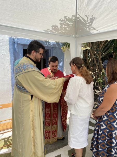 Μετά το πέρας της Θείας Λειτουργίας ακολούθησε δεξίωση στον αυλόγυρο του Ιερού Αγιάσματος.