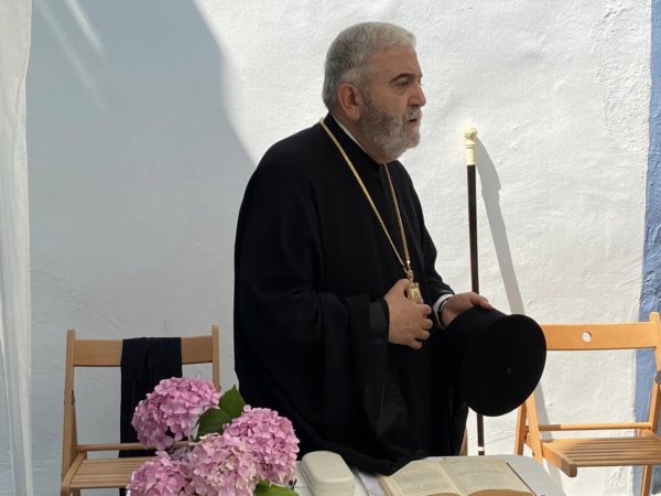 Ο Μητροπολίτης Γέρων Δέρκων στο Ιερό Αγίασμα της Αγίας Κυριακής «του βουνού» της κοινότητας Θεραπείων