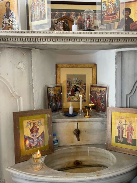 Την επίβλεψη του Ιερού Αγιάσματος έχει η οικογένεια Γεωργίου και Μάρθας Σαμπουντζή.