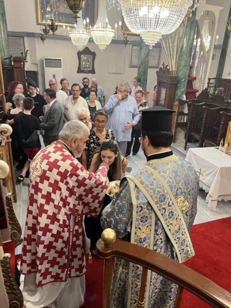 Με την πρέπουσα λαμπρότητα εορτάσθηκε η Μετάσταση της Υπεραγίας Θεοτόκου και Αειπαρθένου Μαρίας στον Ιερό Ναό του Αγίου Γεωργίου της Κοινότητος Μακροχωρίου, ιερουργούντος του Σεβασμιωτάτου Μητροπολίτη Γέροντος Δέρκων κ. Αποστόλου, ο οποίος τέλεσε και την αρτοκλασία υπέρ υγείας των εορταζόντων και εορταζουσών.