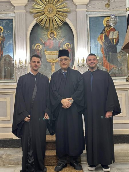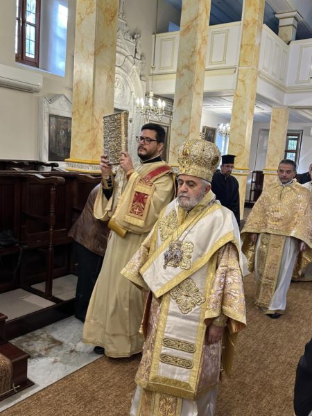 Στο αναλόγιο έψαλλαν ο Άρχων Ιερομνήμων της Αγίας του Χριστού Μεγάλης Εκκλησίας και Άρχων Πρωτοψάλτης της Ιεράς Μητρόπολης Δέρκων κ. Αντώνιος Χατζόπουλος, η Ιεροψάλτρια του Ιερού Ναού κα. Ιωάννα Γρηγοριάδου καθώς και οι εξ Ελλάδος Ιεροψάλτες κ. Βασίλειος Μελισσουργός και κ. Ιωάννης Τριανταφυλλόπουλος, οι οποίοι βρίσκονταν στην Πόλη για την παρελθούσα θρονική εορτή του Αγίου Αποστόλου Ανδρέου.